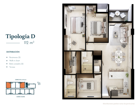 Tipo D - 112 m2 de 3 rec 2 baños 2 est desde $7,037,500